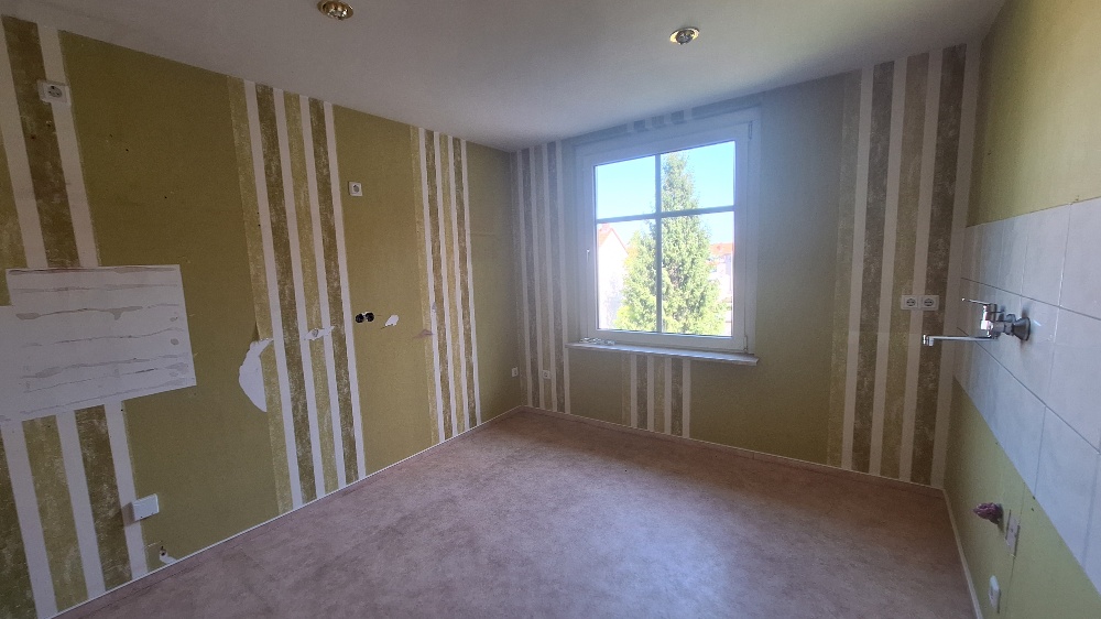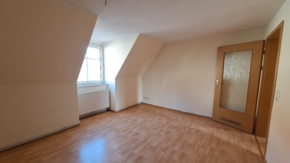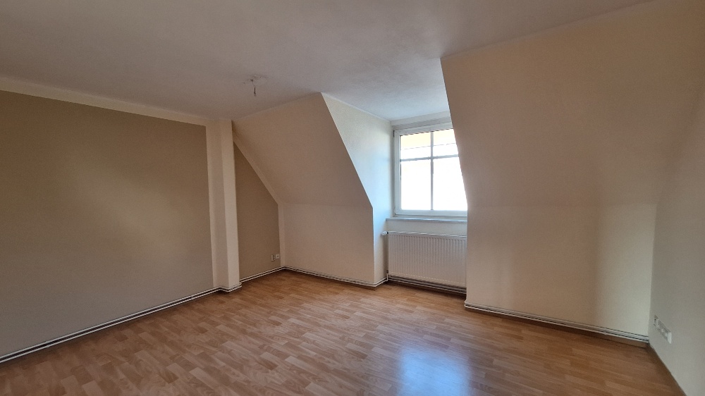 Die dritte Einheit befindet sich ebenfalls im Dachgeschoss des gepflegten Mehrfamilienhauses. Sie verfügt über zwei gut geschnittene Zimmer, eine große Küche, Flur und ein Wannenbad mit Fenster. Die Beheizung erfolgt über eine Gasetagenheizung. Die Wohnung ist sanierungsbedürftig und bietet somit Gestaltungsspielraum für Eigennutzer oder Investoren.