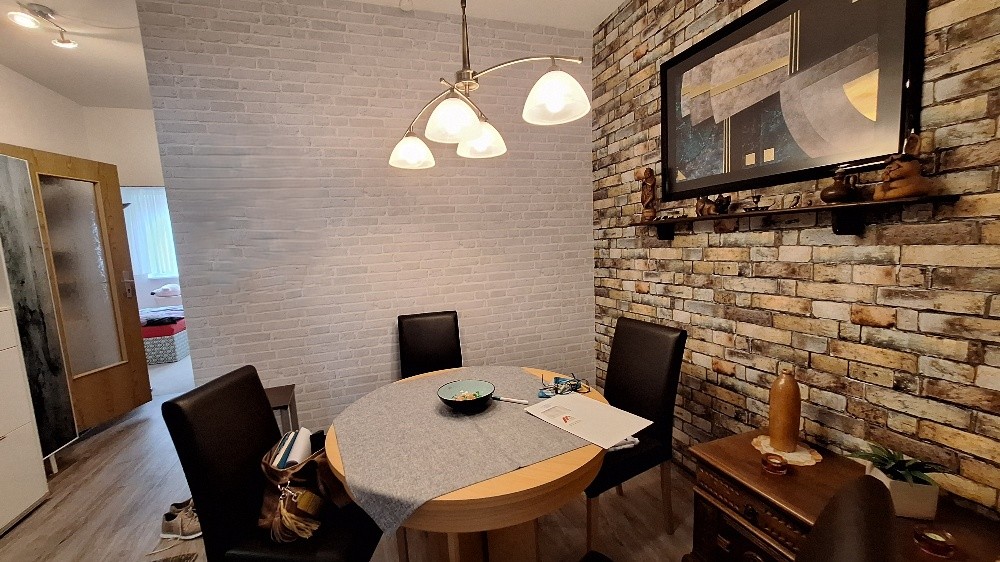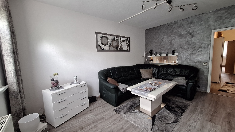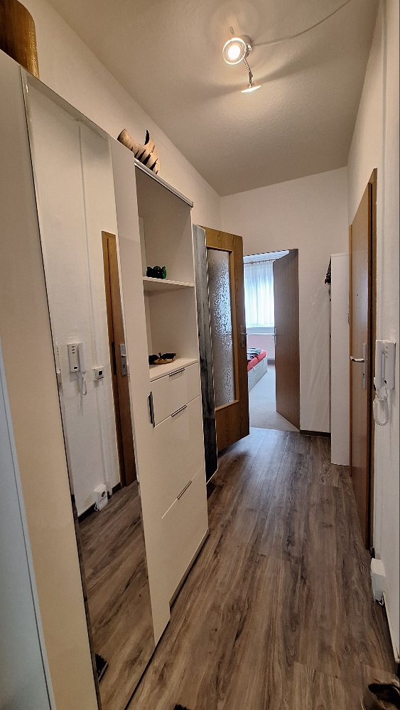 Die Wohnfläche der ETW beträgt 57,34 m² und gliedert sich in 3 Zimmer, Bad mit Wanne sowie Küche mit Durchreiche und moderner EBK auf. Die Eigentumswohnung wurde fortlaufend saniert. Der Waschmaschinenanschluss befinden sich im Badezimmer der Wohnung.