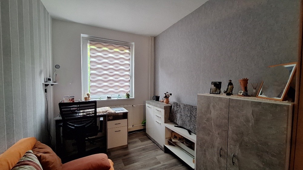 Beheizt wird die Wohnung über Fernwärme mit Flachheizkörpern mit Thermostatventilen. Alle Zimmer sind über den Flur erreichbar. Der Flur und das Wohn- und Kinderzimmer sind mit Vinyl-Belag ausgestattet. Im Bad und der Küche sind Fliesen verlegt. Im Schlafzimmer wurde als Bodenbelag Teppich gewählt. Alle Fenster der ETW sind aus Kunststoff mit Isolierverglasung. Der Einbau der Fenster erfolgte im Jahr der Sanierung 1995.