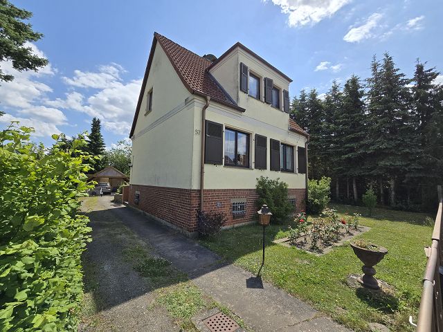 Es ist eine Veranda und eine Terrasse in gartenseitiger Richtung angebaut. Die Immobilie, das Grundstück sowie die Nebengebäude befinden sich in einem gepflegten Zustand.