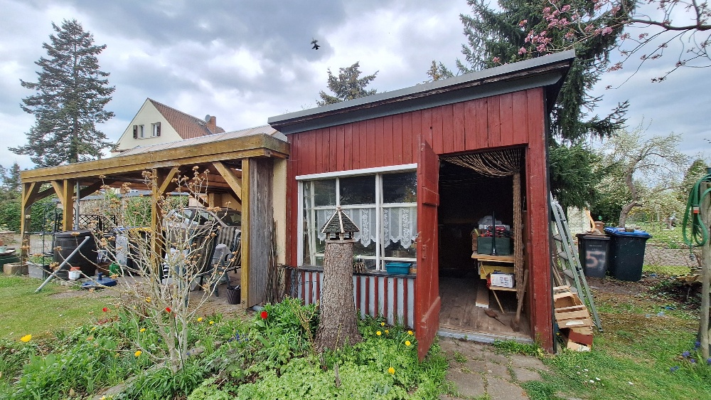 Zum sicheren Abstellen Ihrer Fahrzeuge steht Ihnen auf dem ca. 1.875 m² großen Gartengrundstück ein Doppelcarpart und ein Schuppen zur Verfügung.