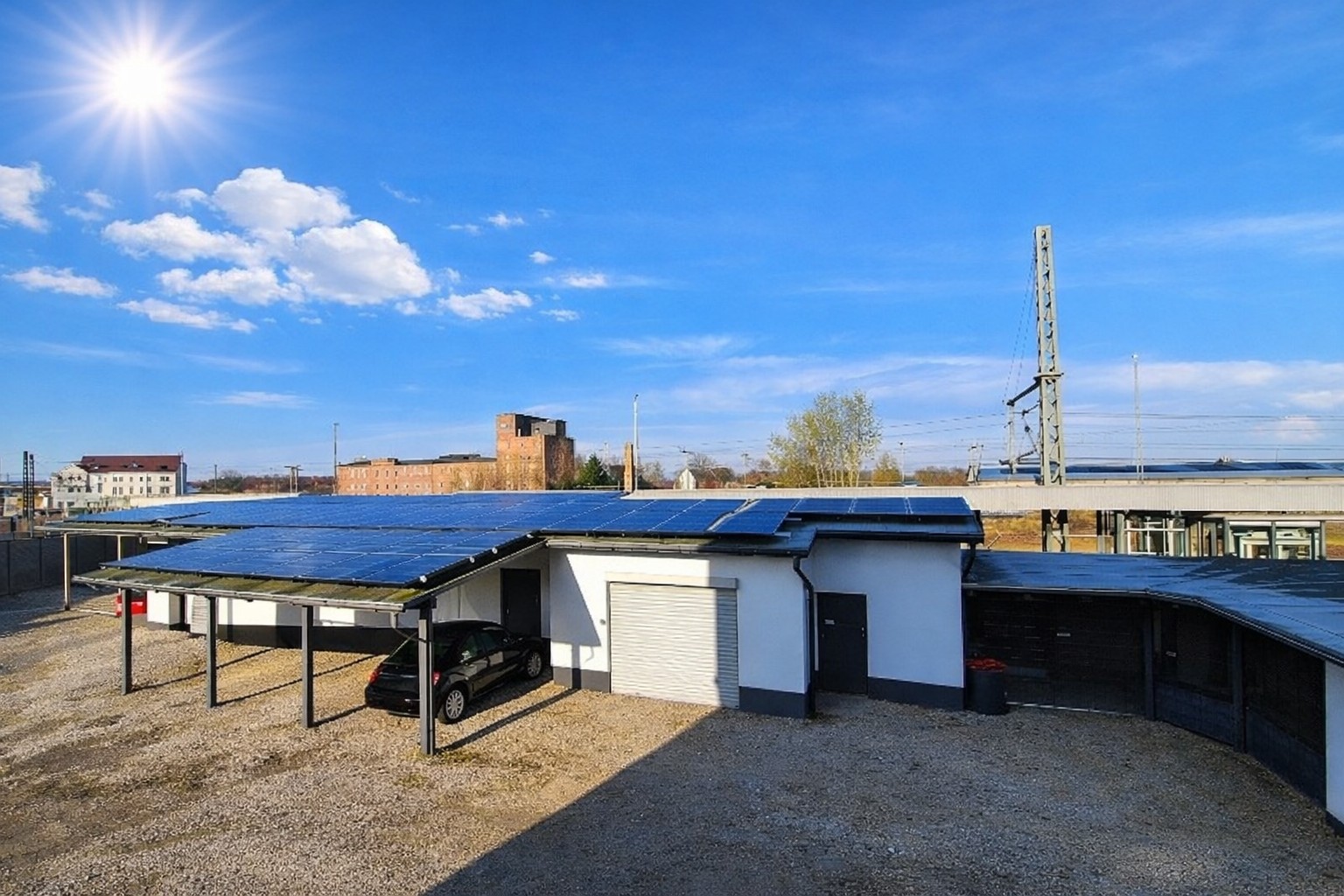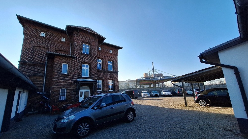 Das Haus verfügt über eine verschließbare Grundstücksfläche. Auf dem Grundstück sind Garagen, Carports, Stellplätze und Fahrradstellplätze vorhanden, die teilweise vermietet sind. Auf dem Dach des Nebengelasses wurde eine PV-Anlage installiert. Die PV-Anlage hat eine Leistung von 27 kWp. Die eingespeiste Sonnenenergie wird aus-schließlich von der Gewerbeeinheit genutzt.