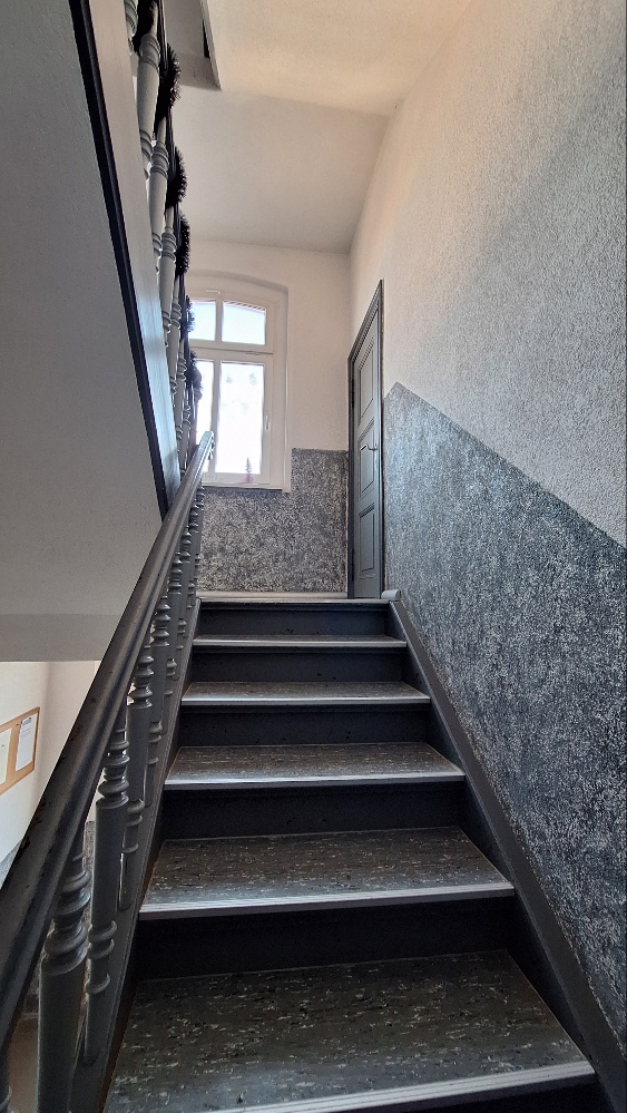 Das Wohnhaus und die Gewerbeeinheit sind vollständig vermietet. Im EG und DG befindet sich jeweils eine 3 Raumwohnung. Die Wohnung im OG ist eine 4 Raumwohnung. Die Bäder in den Wohnungen sind gefliest und mit einer Badewanne ausgestattet. Bis auf das EG hier ist noch eine Dusche zusätzlich eingebaut. In der Wohnung im DG wurde eine Klimaanlage und in der Küche eine EBK eingebaut. Alle Bäder sind Tageslichtbäder. Alle Wohn-räume und Flure sind mit Laminat belegt. Die Bäder und Küchen sind gefliest.