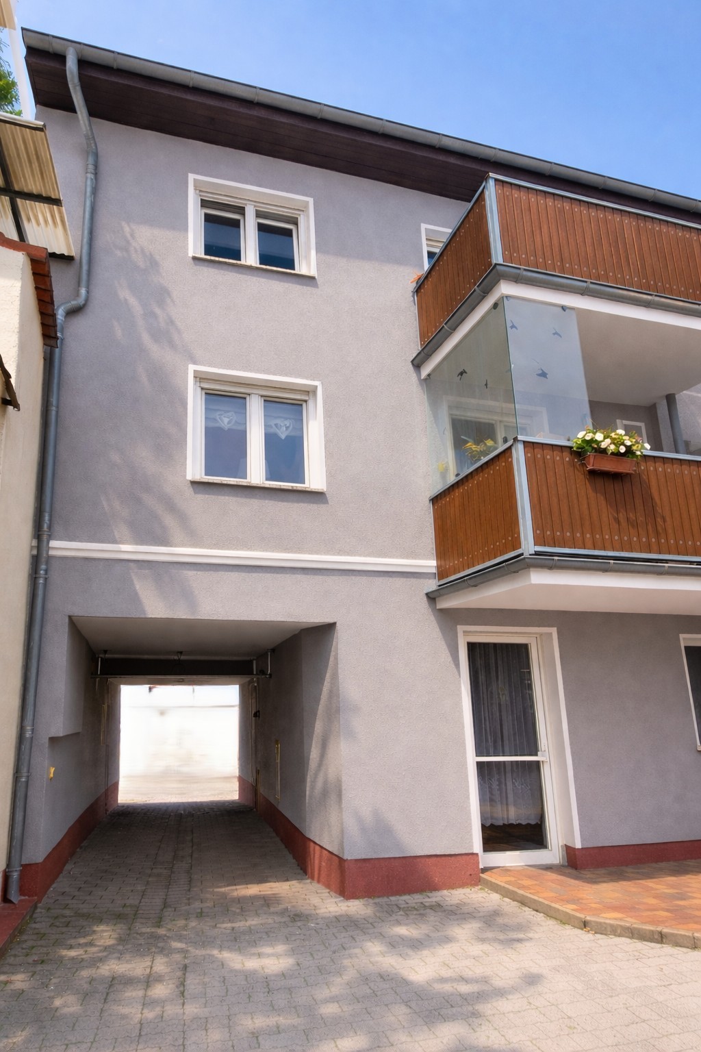 Die Fassade des Hauses ist gedämmt und mit einem Putzsystem versehen. Das Dach ist zur Straßenseite mit Tonziegeln gedeckt und gedämmt, während die hofseitige Dachfläche mit einer Bitumenabdichtung versehen ist. Die Fenster bestehen aus weißen Kunststoffrahmen mit Thermoverglasung und sind zusätzlich mit Rollläden ausgestattet, was sowohl zur Energieeffizienz als auch zum Wohnkomfort beiträgt.