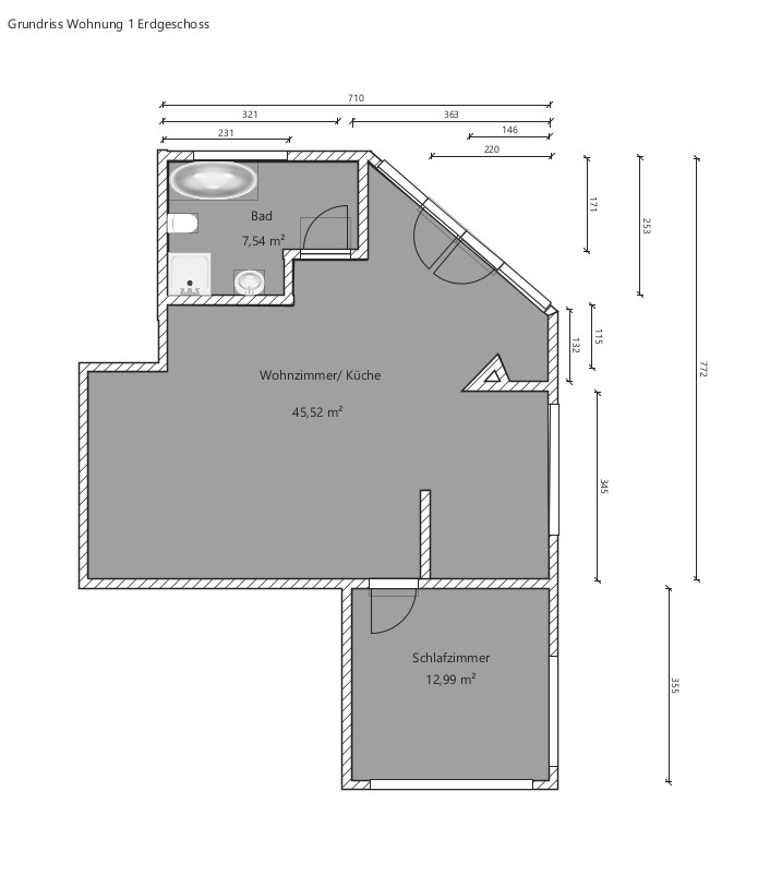 - 1 Tageslichtbad mit Dusche und Badewanne