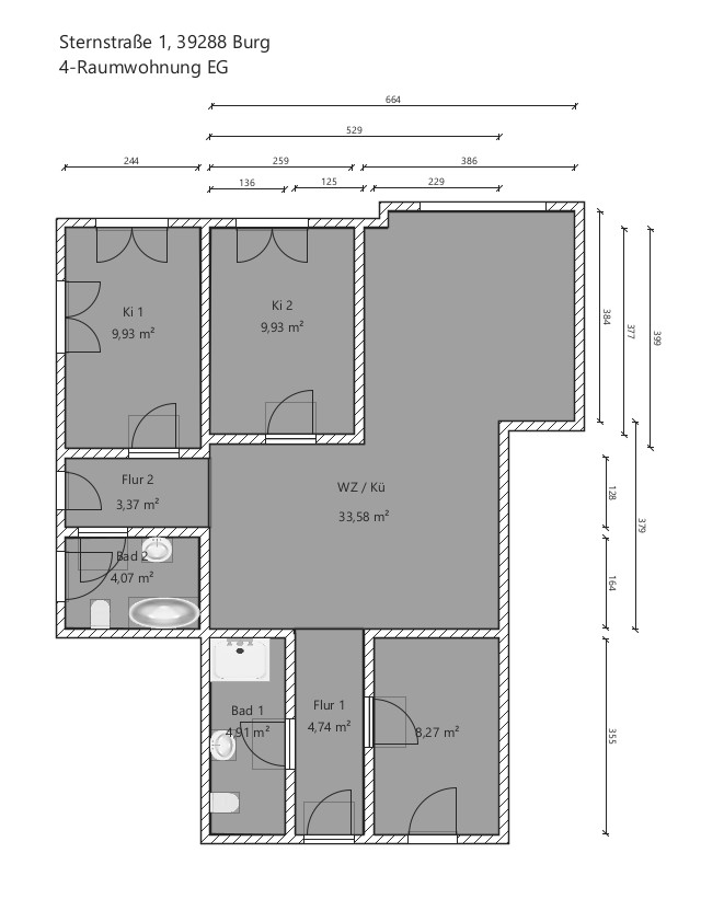 In der Sternstraße 1 in 39288 Burg wird eine hochwertig sanierte 4-Raumwohnung im Erdgeschoss eines gepflegten Mehrfamilienhauses zur Vermietung angeboten. Die umfassende Komplettsanierung wird bis Januar 2026 abgeschlossen und bietet zukünftigen Mietern ein modernes und komfortables Wohnumfeld.