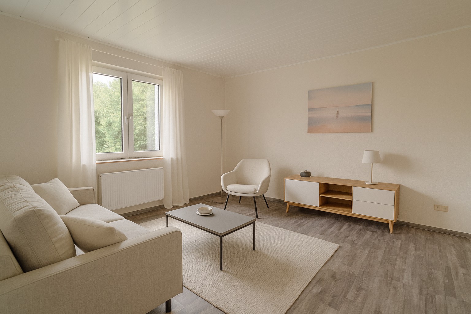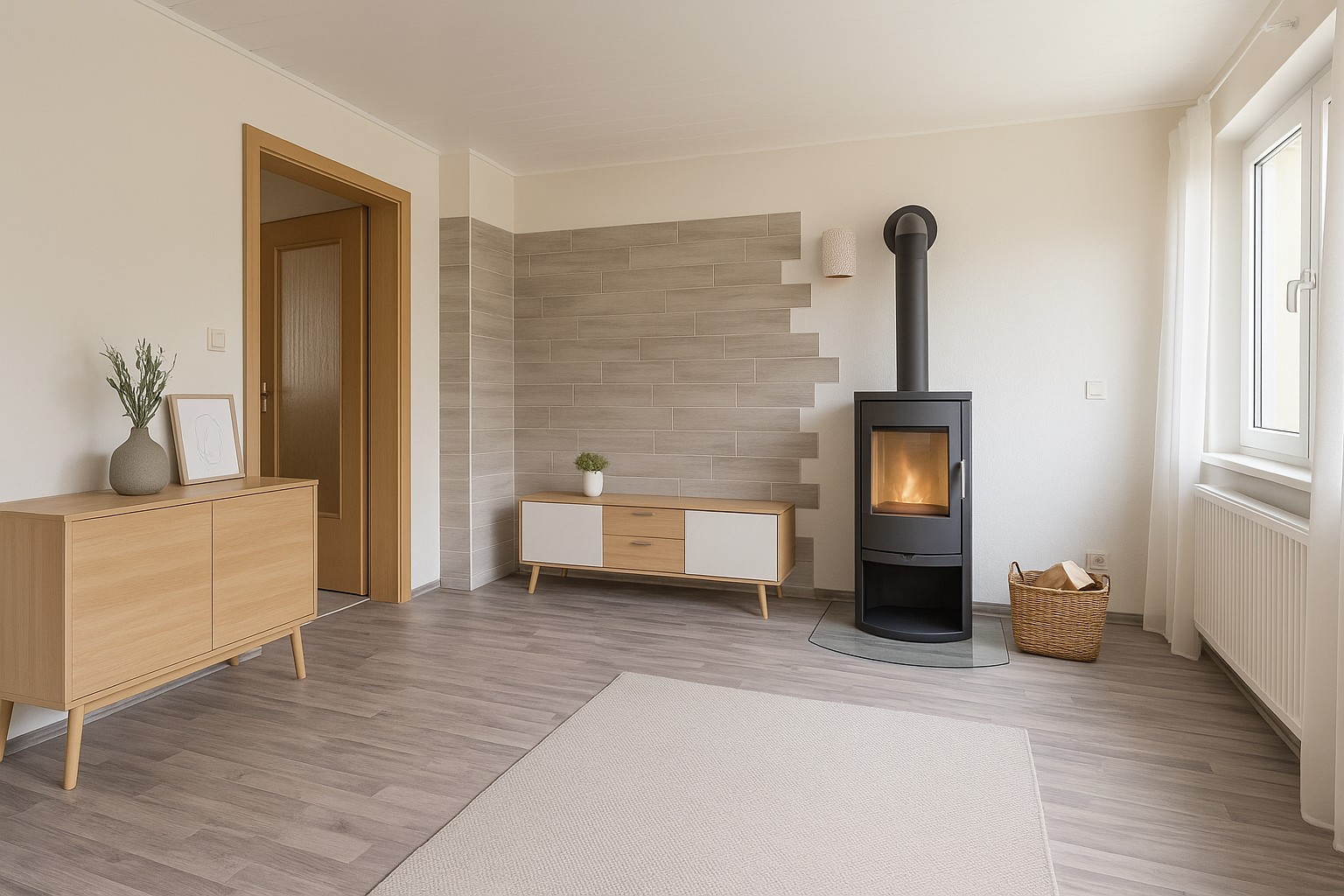 Ein Kaminanschluss ist im großen Wohnzimmer vorhanden und ermöglicht den Einbau eines Kaminofens für behagliche Wärme.