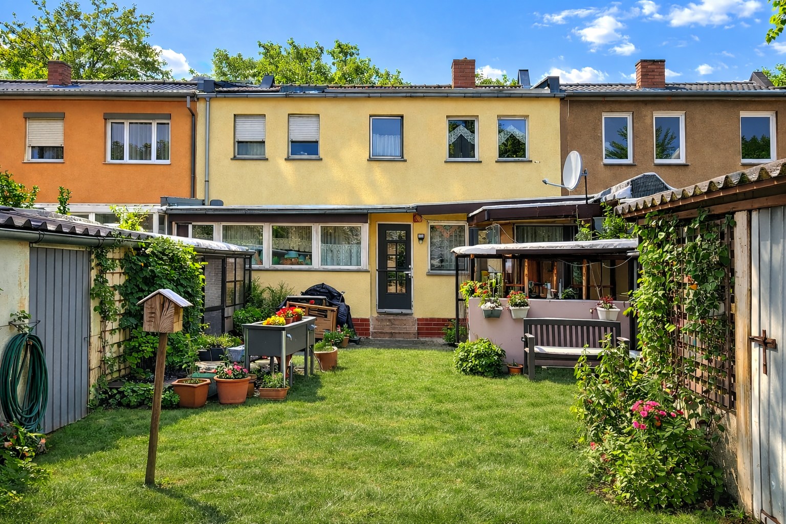 - Carport im hinteren Grundstücksbereich, nutzbar als Fahrradunterstand oder überdachter Aufenthaltsbereich (z. B. für Grillabende)