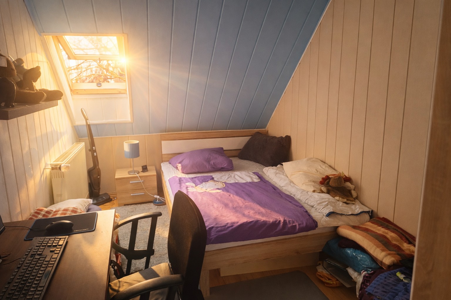 Das ca. 57 m² große Dachgeschoss verfügt über 2,5 Zimmer, eine Küche, einen Flur sowie ein Wannenbad. Die Wohnung wurde bislang vermietet, ist jedoch bereits vom Mieter gekündigt, sodass zukünftigen Eigentümern beide Wohneinheiten vollständig zur Verfügung stehen. Dadurch ergeben sich vielfältige Nutzungsmöglichkeiten, beispielsweise für eine Eigennutzung mit zusätzlicher Vermietung oder für eine Nutzung als großzügiges Einfamilienhaus.